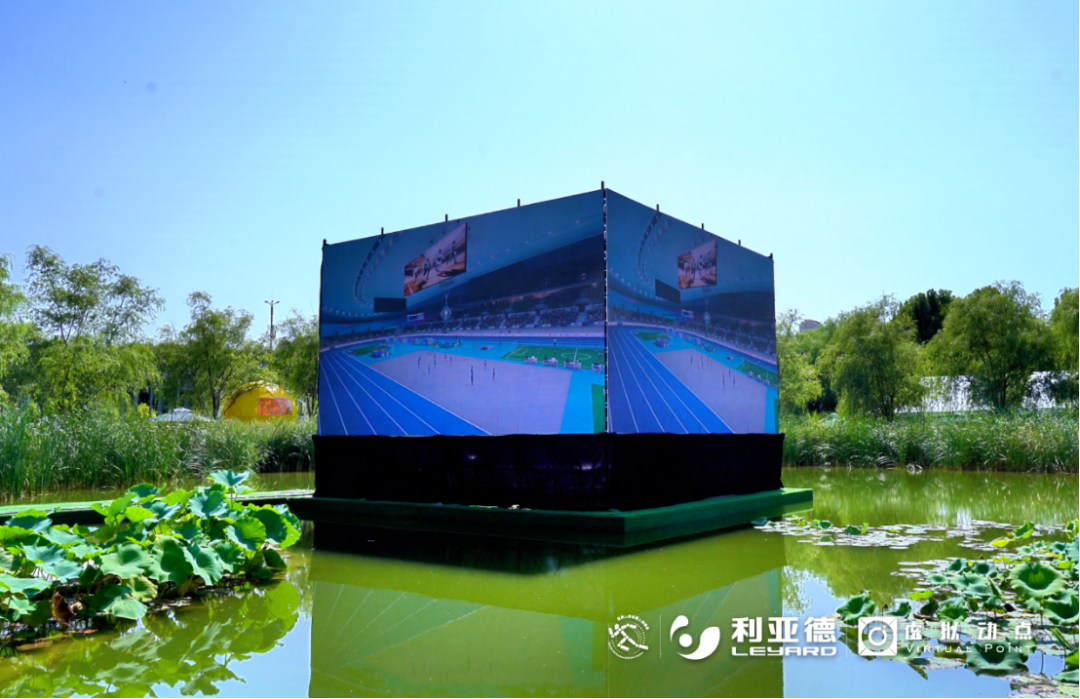 在湖心岛生态区,利亚德通过将L型折叠屏与园林造景融合,构建起“科技+自然+人文”三位一体的创新体验场,将赛场上机器人的精彩表现清晰地展示在游客面前,为游客带来了一种全新的游览感受。