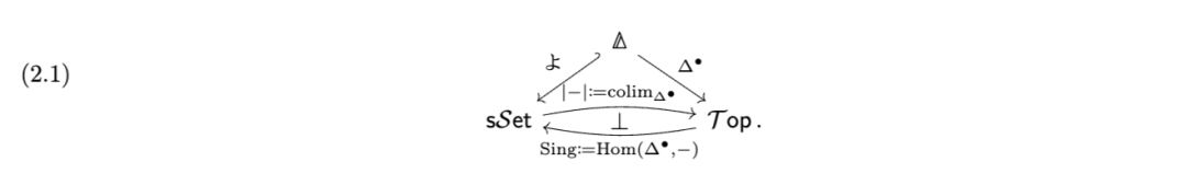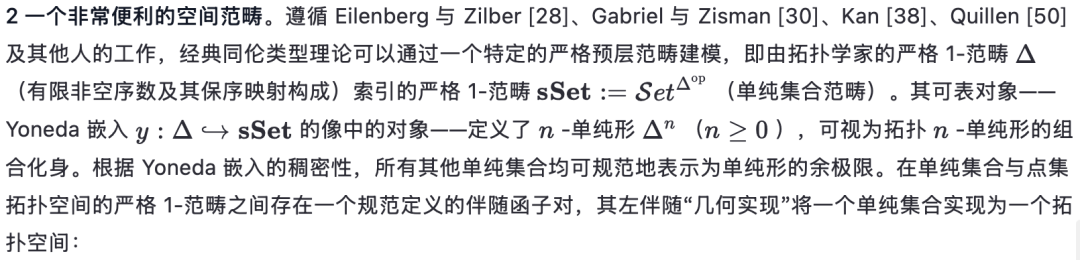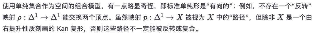 为了尽可能具体,我们在接下来的内容中将提到“单纯形空间”,但合成范畴理论的语言语义更为一般,可以在任何∞-拓扑的单纯形对象范畴中解释[55, 69]。