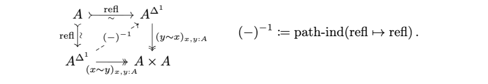 归纳法,此时只需指定常值路径的逆,而我们将常值路径的逆取为常值路径本身: