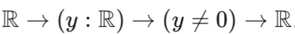 在LEAN的早期版本中,避免了无用值,除法函数需要证明分母非零。这将导致一个函数签名,如