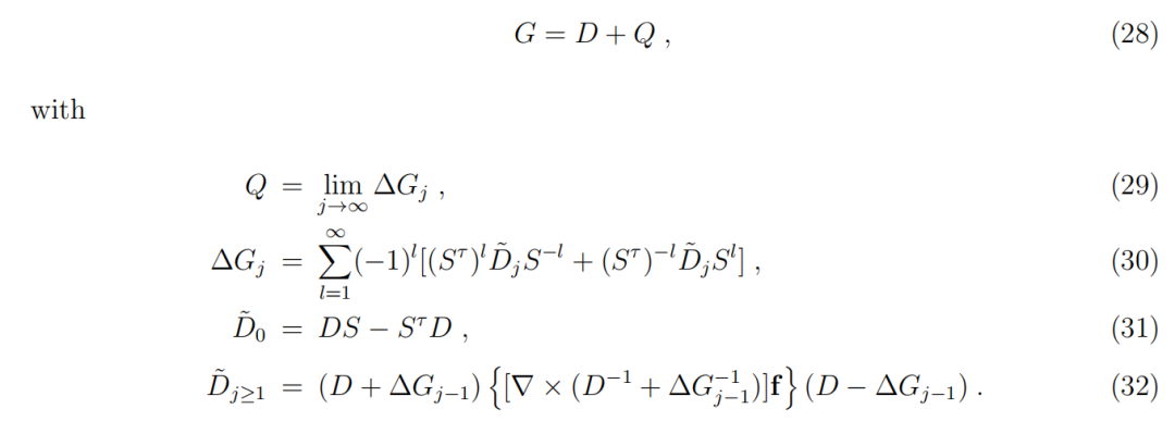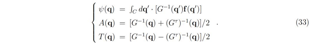 为了从方程(70)和(71)构建势能,我们回到方程(62)。利用 [A+T]−1=G=D+Q(定义于方程(28)),方程(2)可以重写为