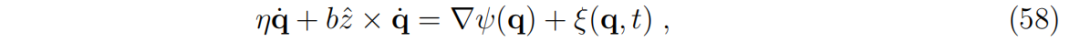 这是无质量粒子在摩擦力和洛伦兹力作用下的非常熟悉的运动方程形式。这里 z^ 是垂直于由 q1 和 q2 形成的平面的状态空间的单位向量,表示磁场 b 的方向,假设电荷量为1。这里的“无质量”意味着粒子的质量如此之小,以至于在当前的动力学考虑中可以视为零,粒子的动力学主要由摩擦力和洛伦兹力主导。