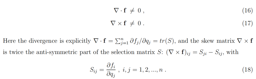 将方程(66)和(67)与方程(70)和(71)进行比较,可以立即看出在第二部分中所考虑的正是这样一个典型的极限环。从方程(70)和(71)构建势能的方法也立即被提出:给定函数 R(q) 和 Φ(q),存在摩擦矩阵 S、势能 ψ 和反对称矩阵 T。实际上,我们需要构建三个独立的量,而不是两个。这种唯一性问题已经在第四部分中讨论过。
