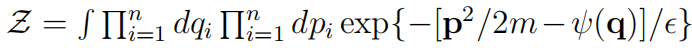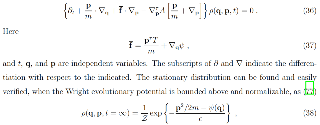 一个玻尔兹曼-吉布斯型分布函数(4),与方程(6)相同。这里的 Z 是配分函数 Z=∫dqexp(ψ(q)/ϵ)。引入“质量”的唯一目的是建立这样一个经典的平衡分布物理,正如方程(38)所展示的。上述方程意味着,对于无限重复自身的动态,例如极限环,沿这种轨迹的势应该是相同的。