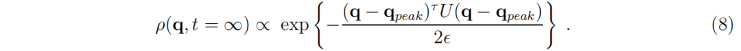 这里,U 是一个正定对称矩阵,这是势能峰值的必然结果。在该峰值附近找到系统的稳态概率密度是一个典型的高斯分布: