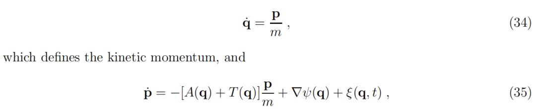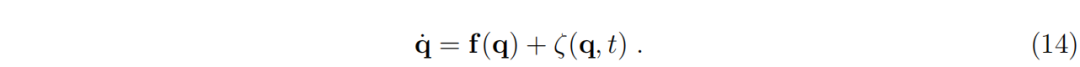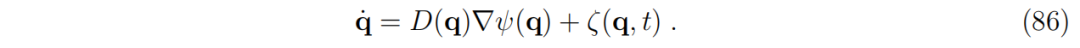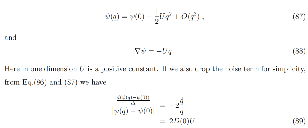 需要指出的是,势函数 ψ(q) 从一开始就通过构造存在。这是物理学中最有用且最重要的定量概念之一。如果随机力可以设为零,即 ξ(q,t)=0,也就是确定性动力学,那么这个无质量粒子的动力学总是会降低其势能: