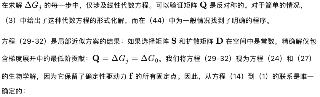 这导致了我们的第二个评论:基于这种考虑,人们可能会倾向于得出这样的结论:牛顿动力学是达尔文动力学(由方程(1)和(2)表达)的一个特例,即上升矩阵消失 A=0 和随机驱动力为零 ξ=0 的情况。许多生物学家可能会认为这个结论是自然的(19;53)。