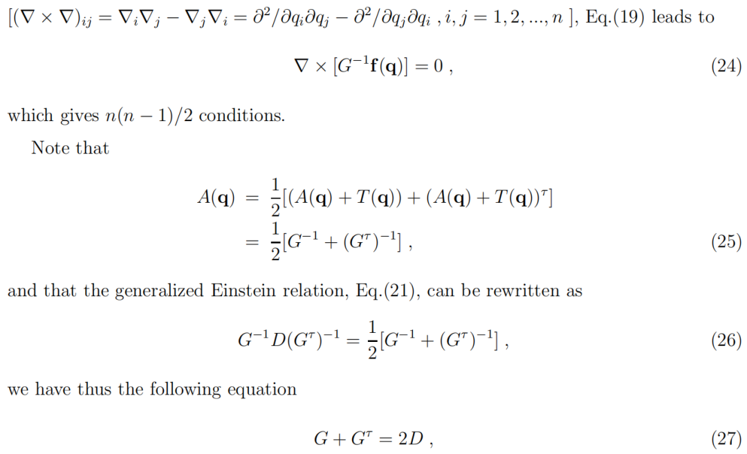(v) 为了简化计算,我们在方程(59)中选择摩擦矩阵与单位矩阵成正比。可以验证,任何正定对称矩阵都可以得出相同的结论,只要其强度相对于势梯度以更高的阶趋于零。