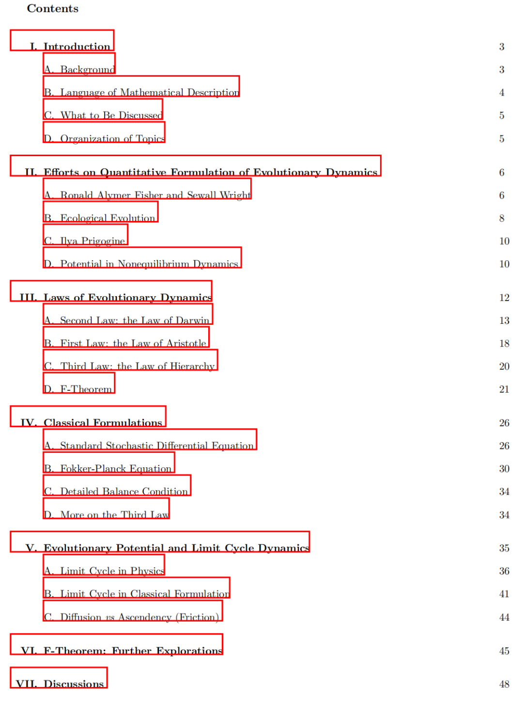 本文其余部分的结构安排如下。在第二部分,我们将回顾生物科学和物理科学中关于进化动态定量表述的最新努力。在第三部分,我们将提出并讨论进化论的三条定律。我们将引入并讨论四个动态元素,并将费舍尔自然选择的基本定律重新解释为F-定理。在第四部分,我们将讨论所提出的三条定律与经典表述之间的联系。这种联系的一个示例将在第五部分中明确展示。F-定理将在第六部分中进一步讨论。第七部分将讨论当前表述的含义。第八部分将对选定的参考文献进行进一步说明。第九部分将总结本文的结果。