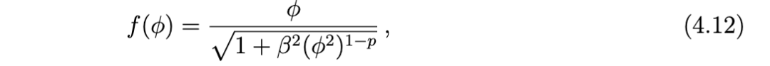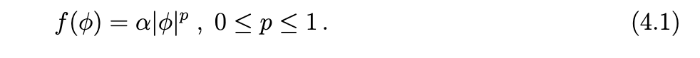 此类幂律型激活函数出现在不同的场景中。指数 p=1 对应于线性激活函数;对于奇函数激活函数及足够小的 φ,这也是一个良好的近似。p→0 的情况适用于接近饱和的区域,例如 tanh(x) 激活函数在 φ 较大时的情形。其他幂次,如 p=1/2,在 φ 的广泛中间区域也可能相关。事实上,当神经动力学经历导致脉冲生成的 I 型分岔时,可得到 p=1/2 [30, 31, 32]。在我们当前的分析中,我们将假设神经激活函数在一定参数范围内可被 (4.1) 式良好近似。