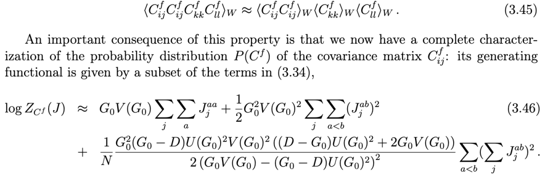 需要注意的是,实验上对相关性的评估并不涉及对耦合变量的平均,而是对某些神经元集合的经验平均。在这里,我们假设在 N 很大的极限下,宏观状态不依赖于每个随机参数的精确值,而只依赖于它们的统计特性 [19]。换句话说,我们假设系统是自平均的(self-averaging)。这一假设使我们能够使用对 W 的平均来预测经验平均值。