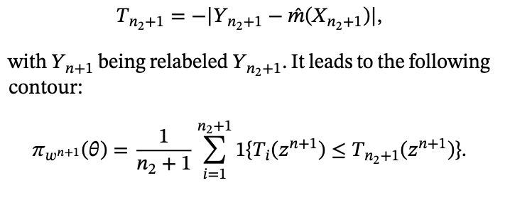 Tᵢ = -|Yᵢ - m̂(Xᵢ)|, i = 1, ..., n₂, (14)