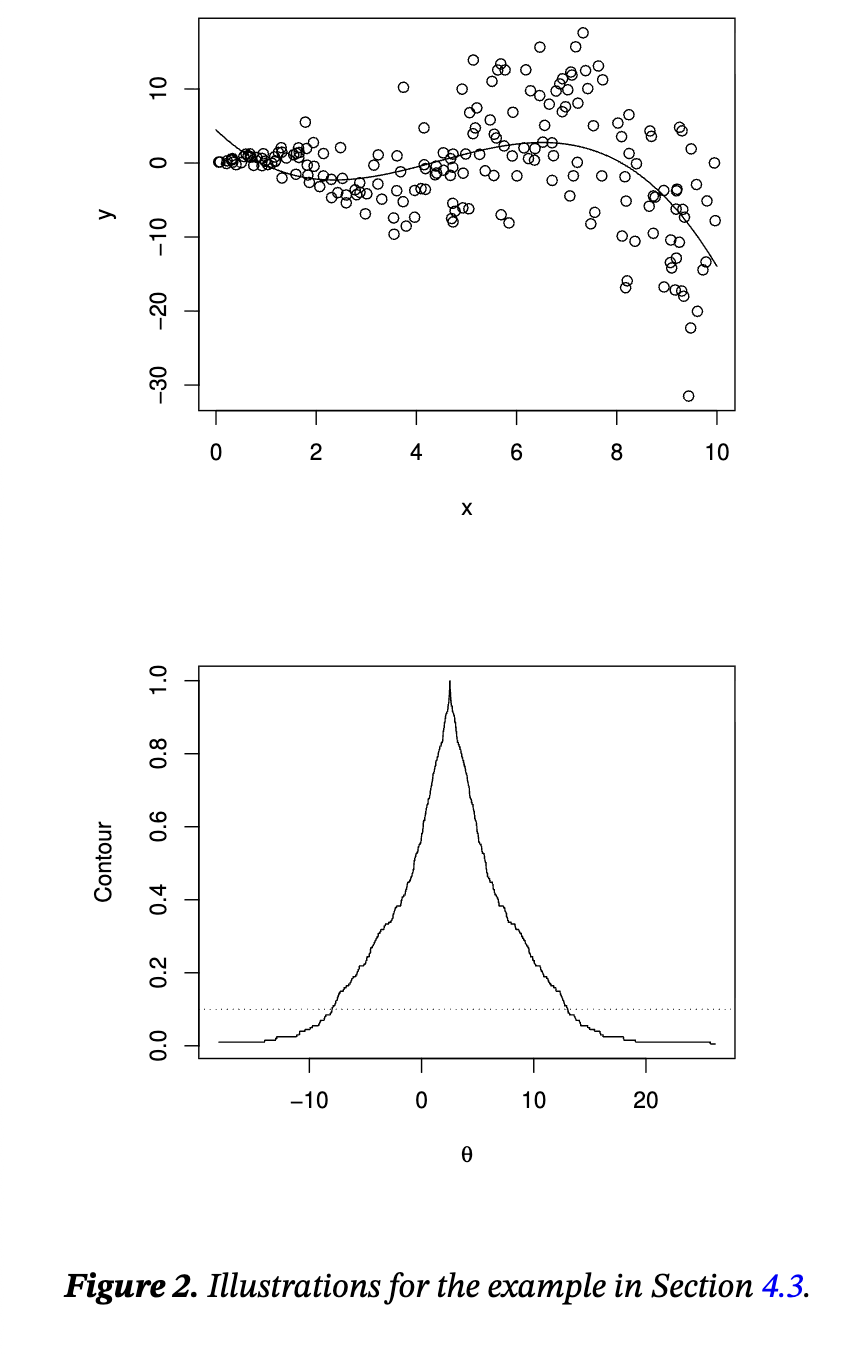 对于 Θ 的无分布假设 IM,其轮廓函数按 (12) 定义,保留了定理 4.1 中建立的所有性质。然而,一个关键挑战是识别一个合适的相容性-枢轴 ρ,它在所提出的构造中起着至关重要的作用。这一挑战与第 3 节中(无条件的)无分布假设 IM 构造中的挑战类似。尽管特定应用允许识别该枢轴(如下文示例所示),但一种广泛适用的策略仍难以捉摸。事实上,此类相容性-枢轴可能并不总是存在——详见第 5 节的进一步讨论。