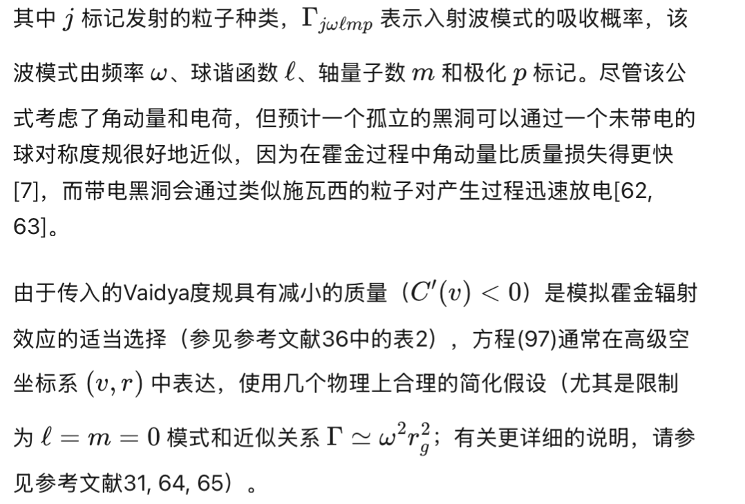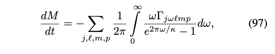 基于霍金的结果[6],Page证明了由于霍金辐射的发射导致的黑洞质量损失可以用以下公式描述: