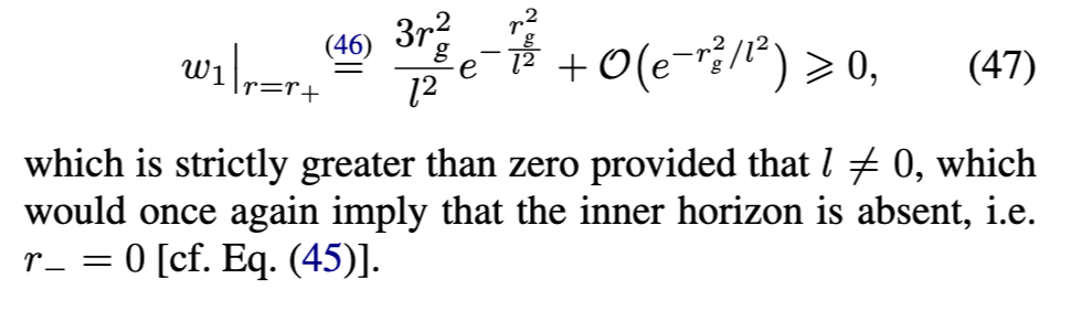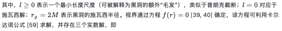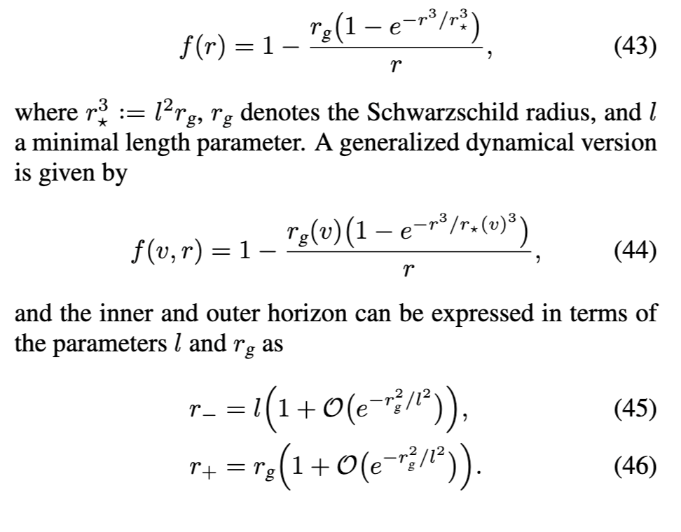 D. 丁姆尼科娃模型 另一著名的正则黑洞(RBH)模型由丁姆尼科娃(Dymnikova)提出[33]。其度规函数为: