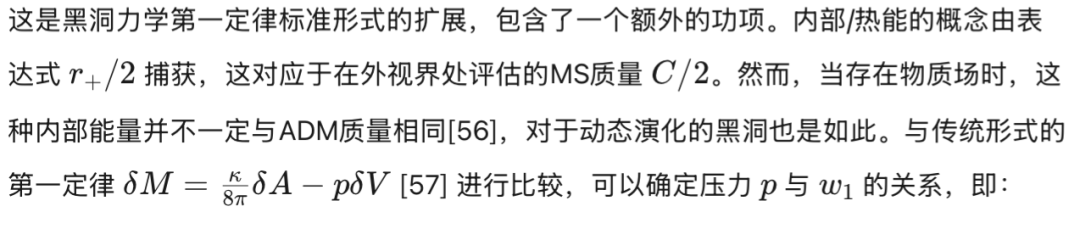 我们注意到,我们的分析与将偏离标准形式的第一定律[方程(6)]解释为热力学压力项的解释一致,例如在参考文献25和57中提出的,可以从方程(22)-(23)中看出。从这个意义上说,MS质量的线性系数
