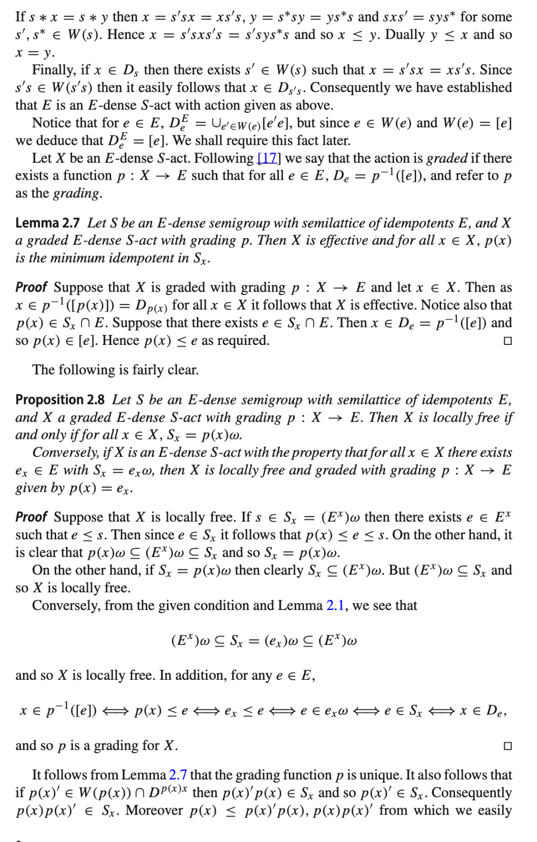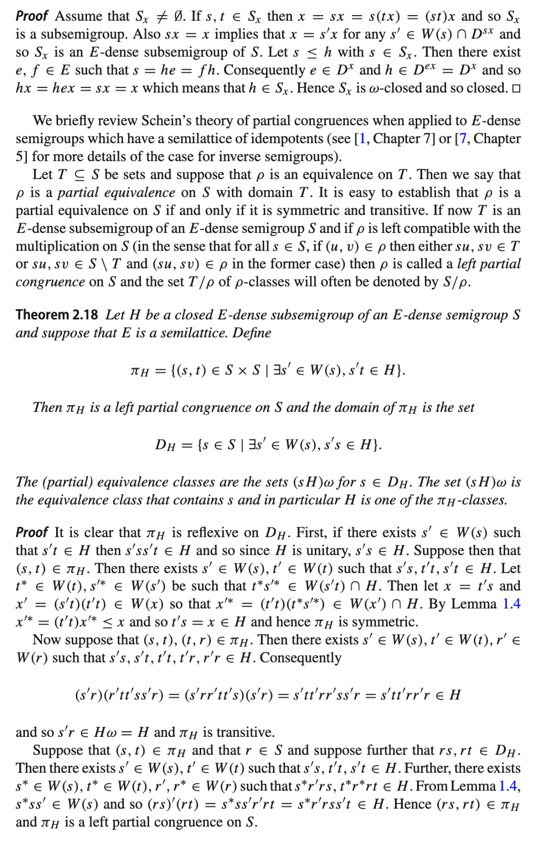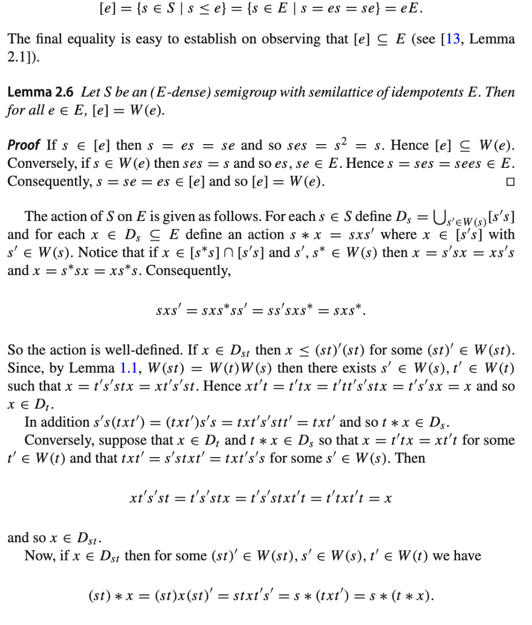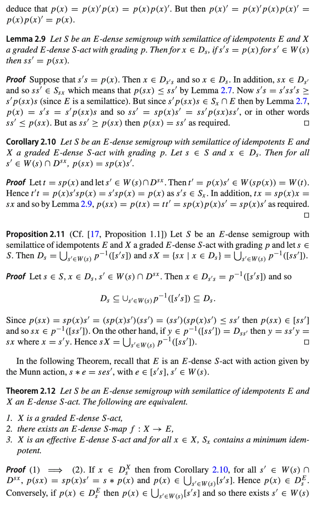 第一个性质说明“解密”是可行的,第二个性质说明我们可以使用相同类型的群作用进行解密,尽管可能使用一个不同的密钥。注意到这与 E-稠密半群的 E-稠密作用有明显的相似性,我们考虑为了将第 2 节的部分内容推广到全半群作用所需满足的条件。我们将看到,此类作用在密码学应用中的使用可能相当有限。