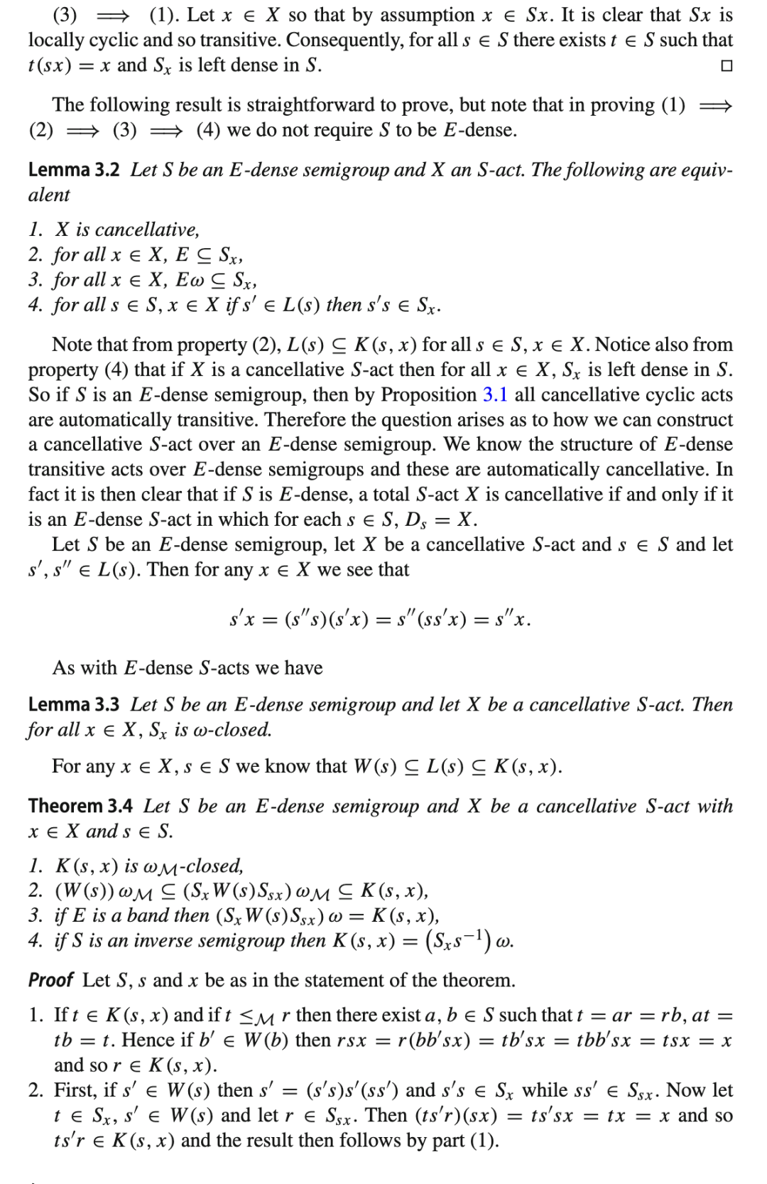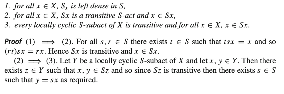 命题 3.1 设 S 是一个半群,X 是一个 S-作用(不一定是可消去的)。以下条件等价: