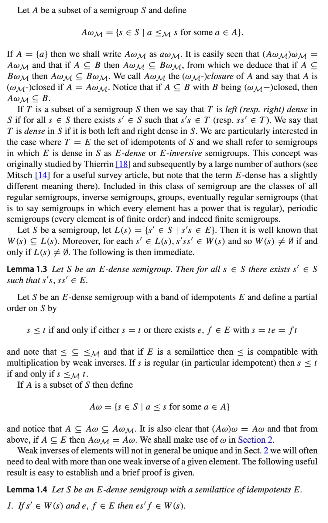 关键词 半群 · 幺半群 · E-稠密 · E-逆 · E-酉 · 半群作用 · E-稠密作用