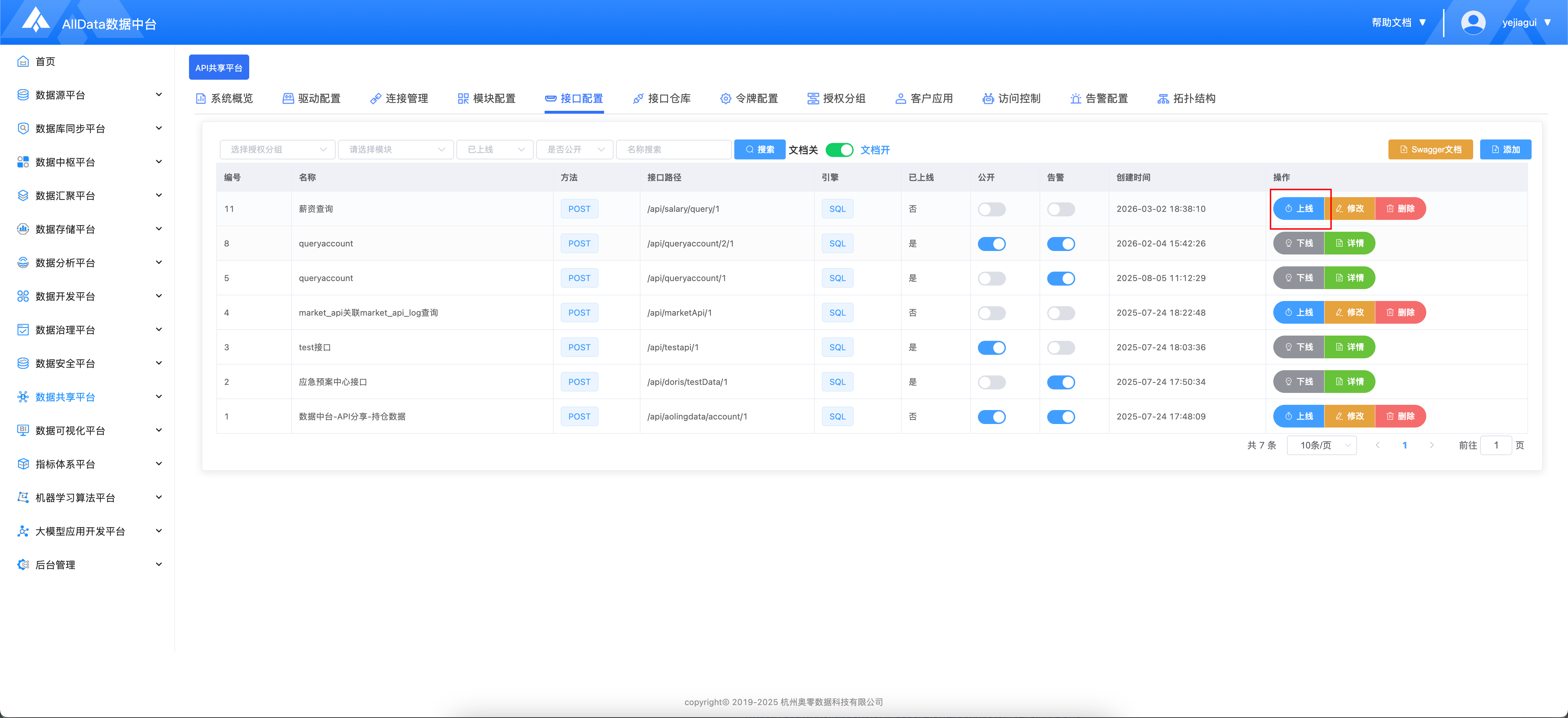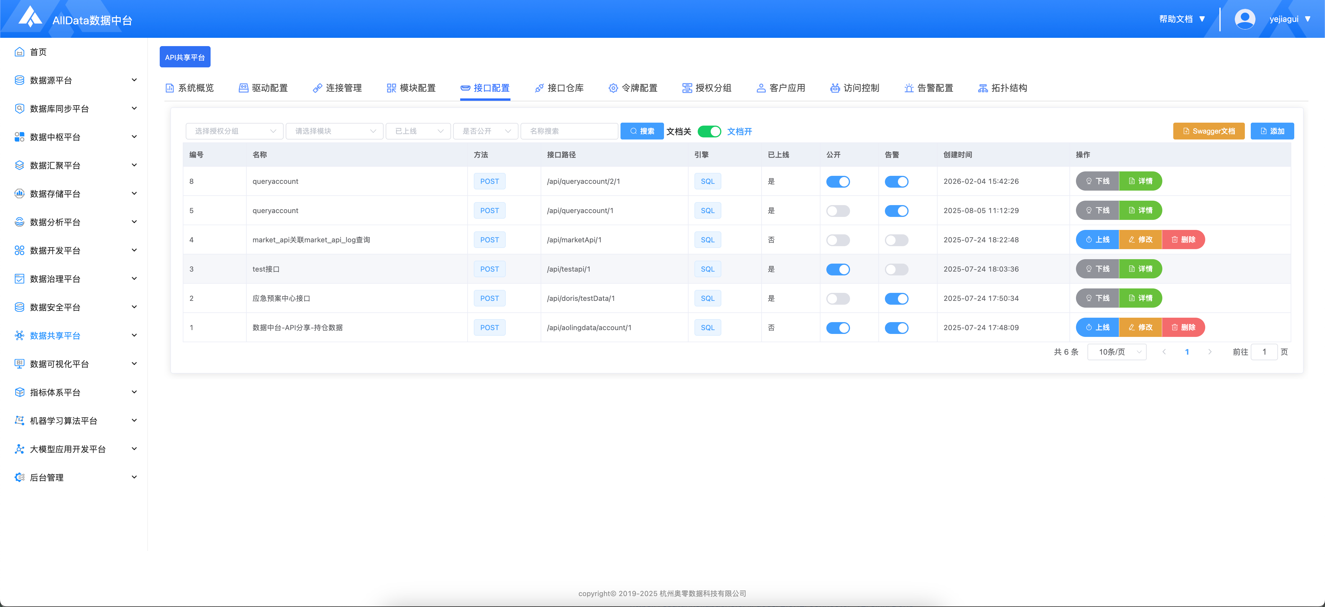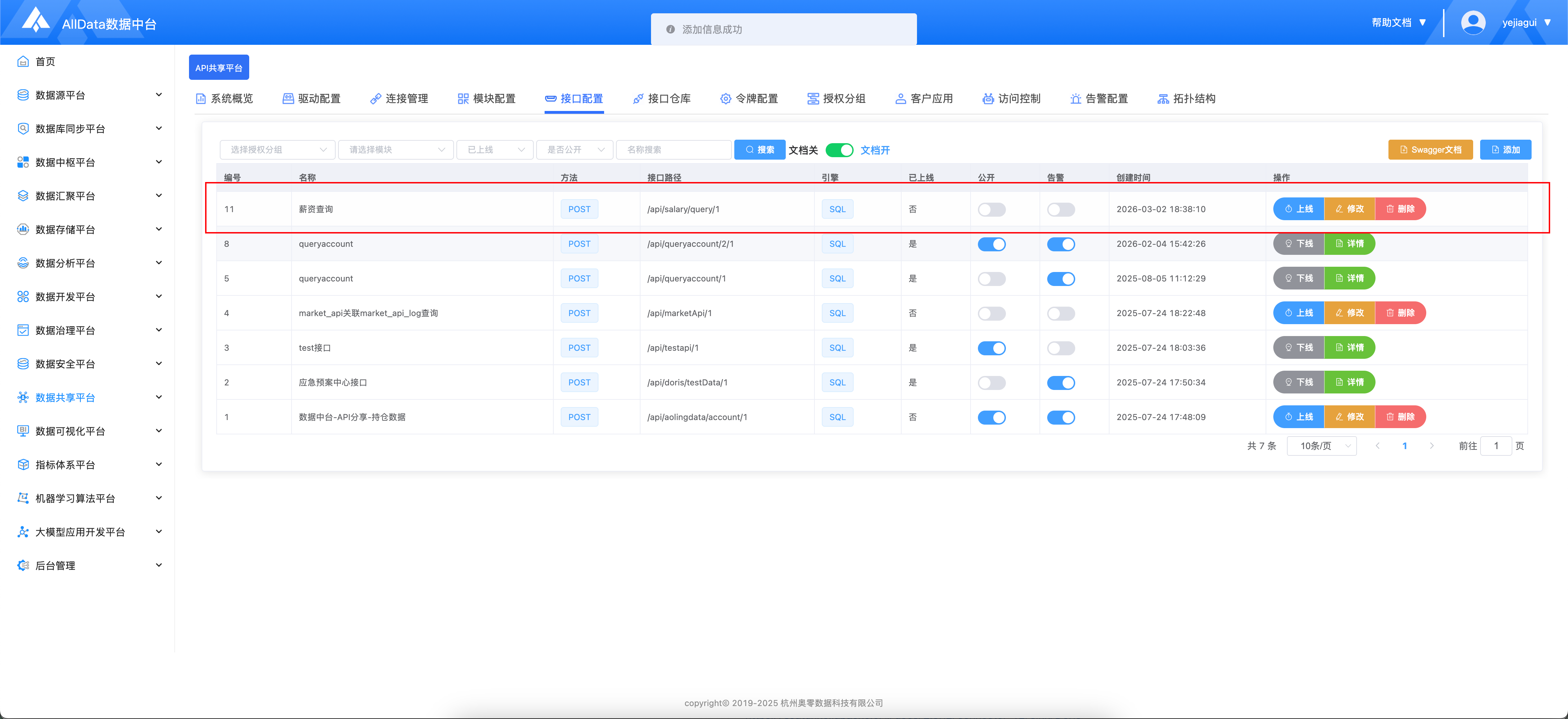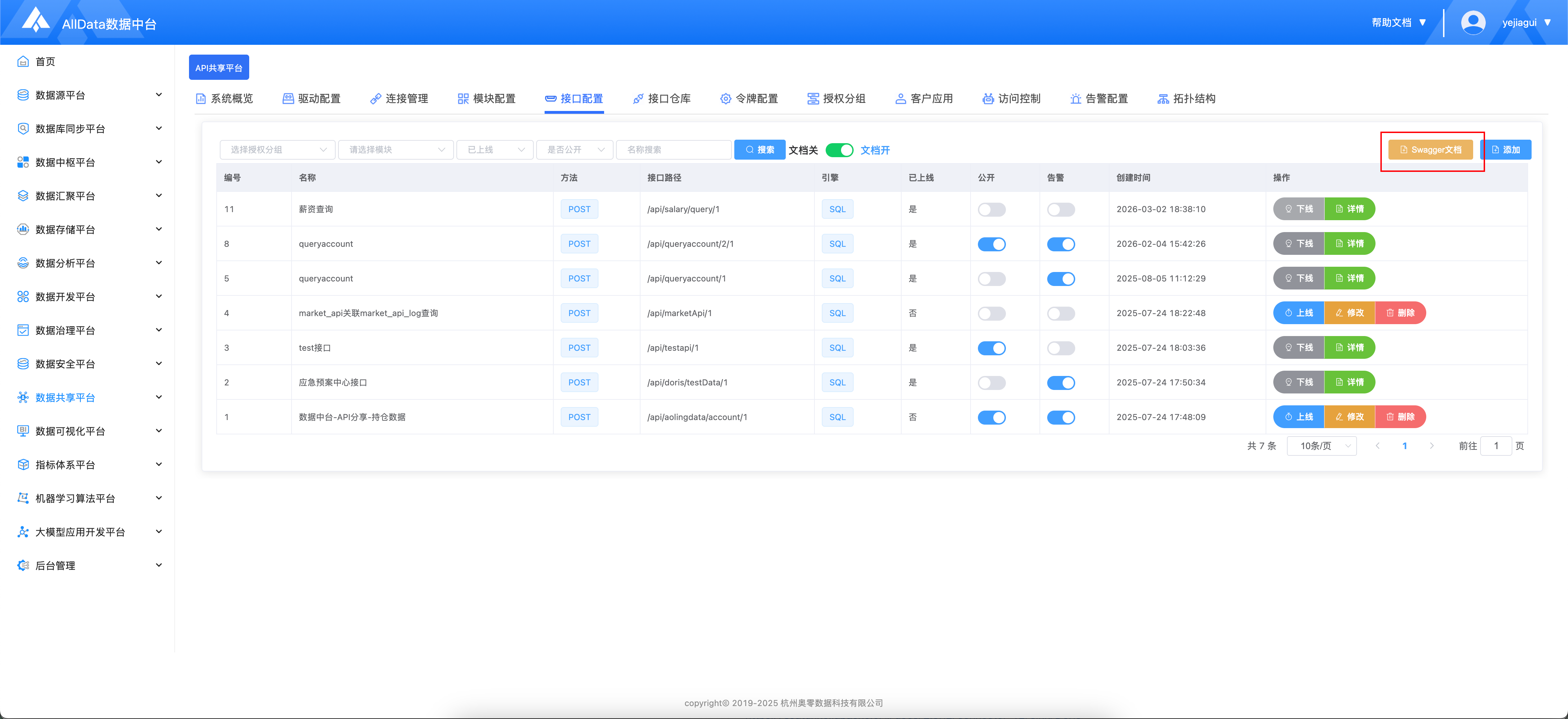 AIIData数据中台-API共享平台基于开源项目SqlRest构建,低代码、快速生成、安全可控的 API 服务能力,让企业数据资产以标准接口形式对外共享与复用。
