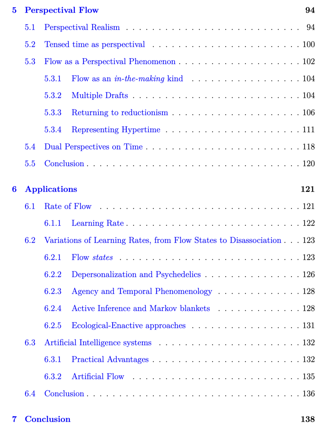 事实上,TF可在B理论框架内被视作真实的(veridical)。本论文最终将沿着类似路线展开论证,并结合从形而上学至心理学等多方面的考量,充实此类解释的具体内涵。简言之,回溯法尔(Farr)对还原论的第四条刻画——即TF并不表征“时间流逝”本身——我最终将主张:我们对TF的体验,实则表征了我们经验中某些对应于某种“高阶变化”(higher-order change)。这可被理解为:TF(部分地)表征了相对于一个行动主体内在世界模型而言的变化。换言之,它融合了巴登(Bardon)所提出的直接投射与间接投射二者。