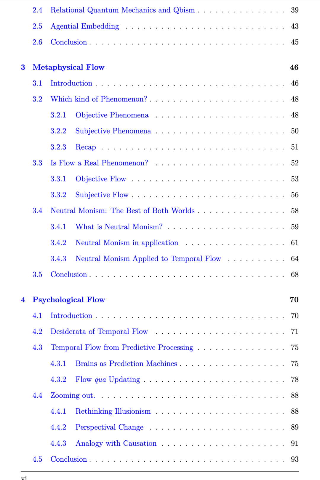 本论文更高层次的目标在于:体现科学哲学所秉持的自然主义立场与整合性跨学科性。这一认识论立场促使我们采取一种不仅包含“以科学为依据的哲学”,更在某种程度上分享科学本身智识目标(即理解自然世界)的研究路径。换言之,本论文力求成为哲学工作与科学工作连续贯通的一个范例³³。为佐证此点,我在构建哲学立场时大量援引科学文献,尤以物理学与认知科学领域为重³⁴。尽管如此,论文中仍存在若干偏离纯粹科学目标、进入所谓“纯粹形而上学”(pure metaphysics)领域的节点³⁵。不过整体而言,本论文力求不仅贡献于哲学论辩,亦能介入多样的科学议题——通过澄清概念混淆、审思恰当的实证方法论,并提出新颖的研究方向。