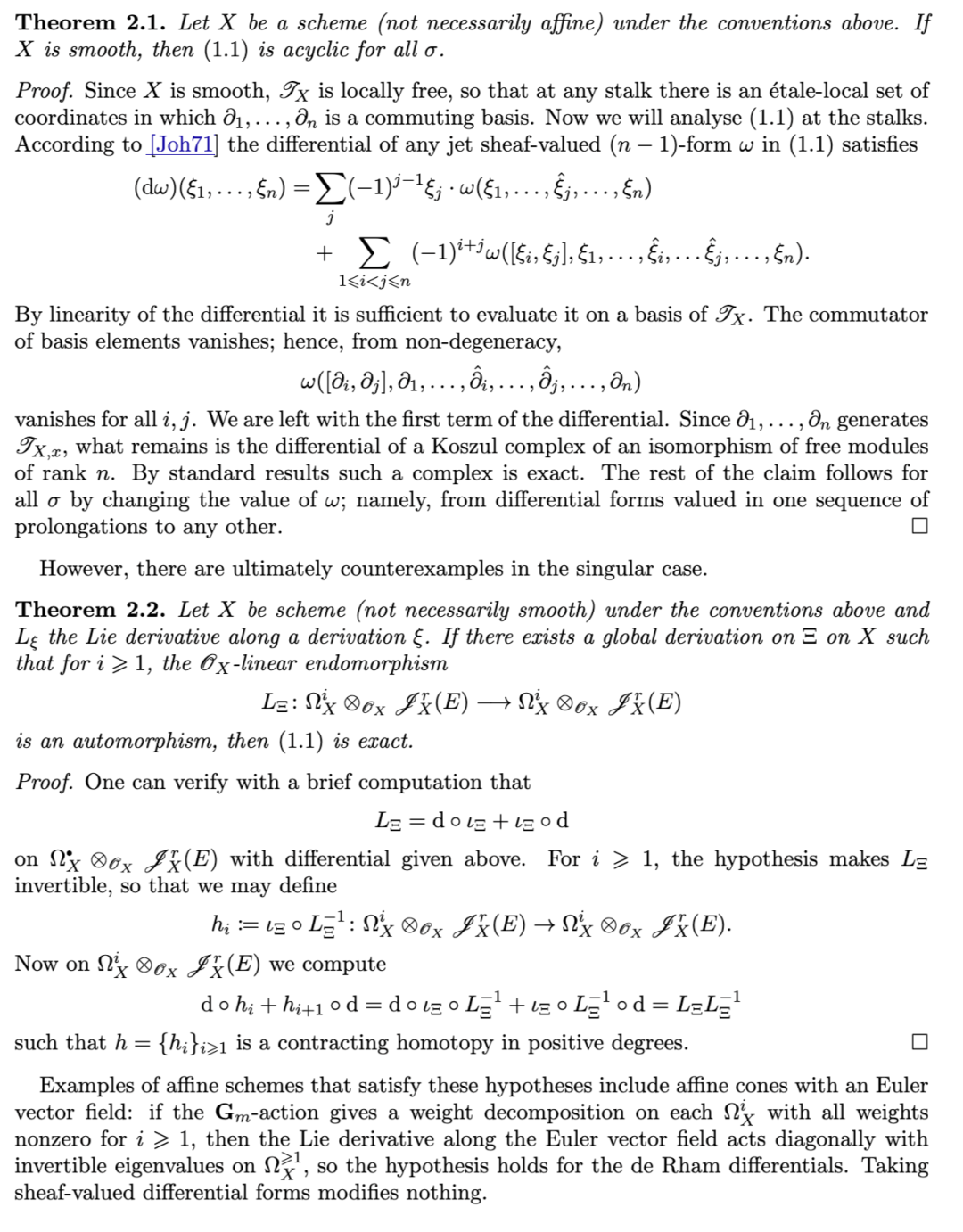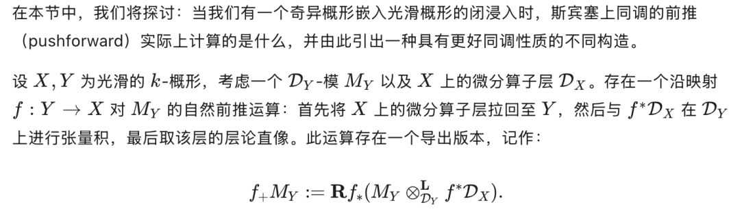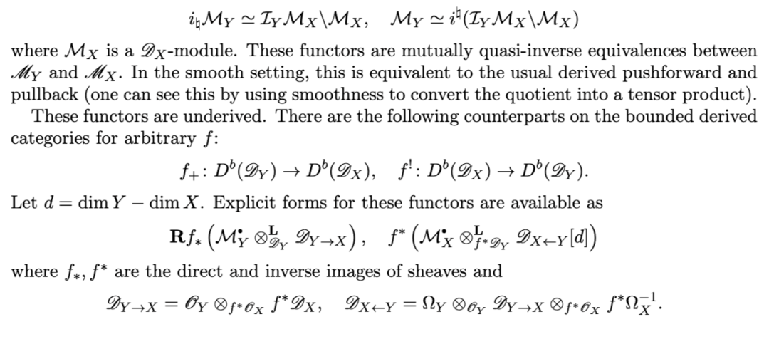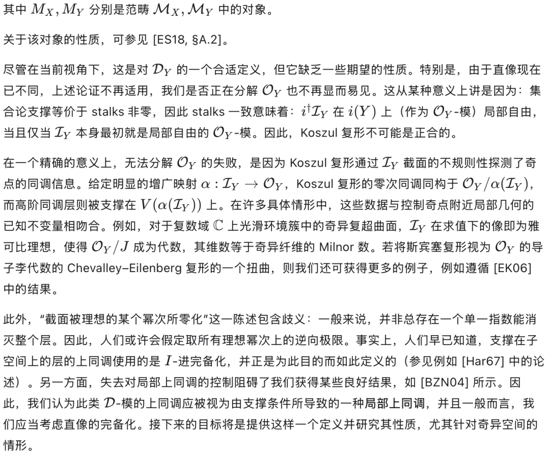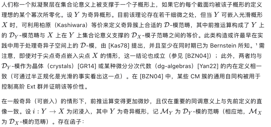 Johnson 指出,该理论可完全推广至光滑代数簇的情形;然而,从光滑情形跃迁至一般(即奇异)情形,其成效远不如最初设想的那样丰硕,原因在于:在奇异空间上,D-模具有一系列不良性质[BGG72]。迄今为止,代数理论尚未被恰当地推广到一般奇异空间(如任意代数簇)的情形。