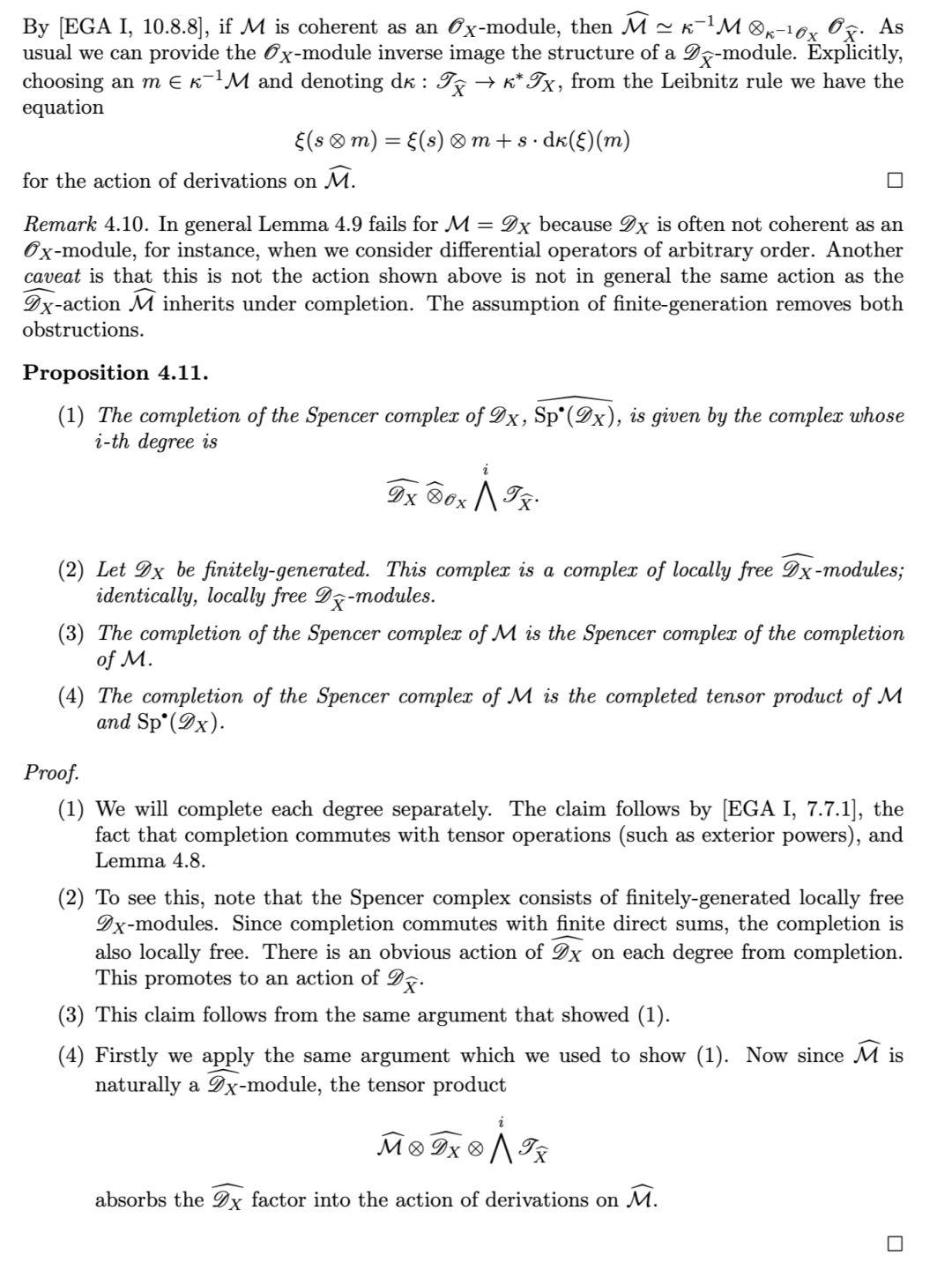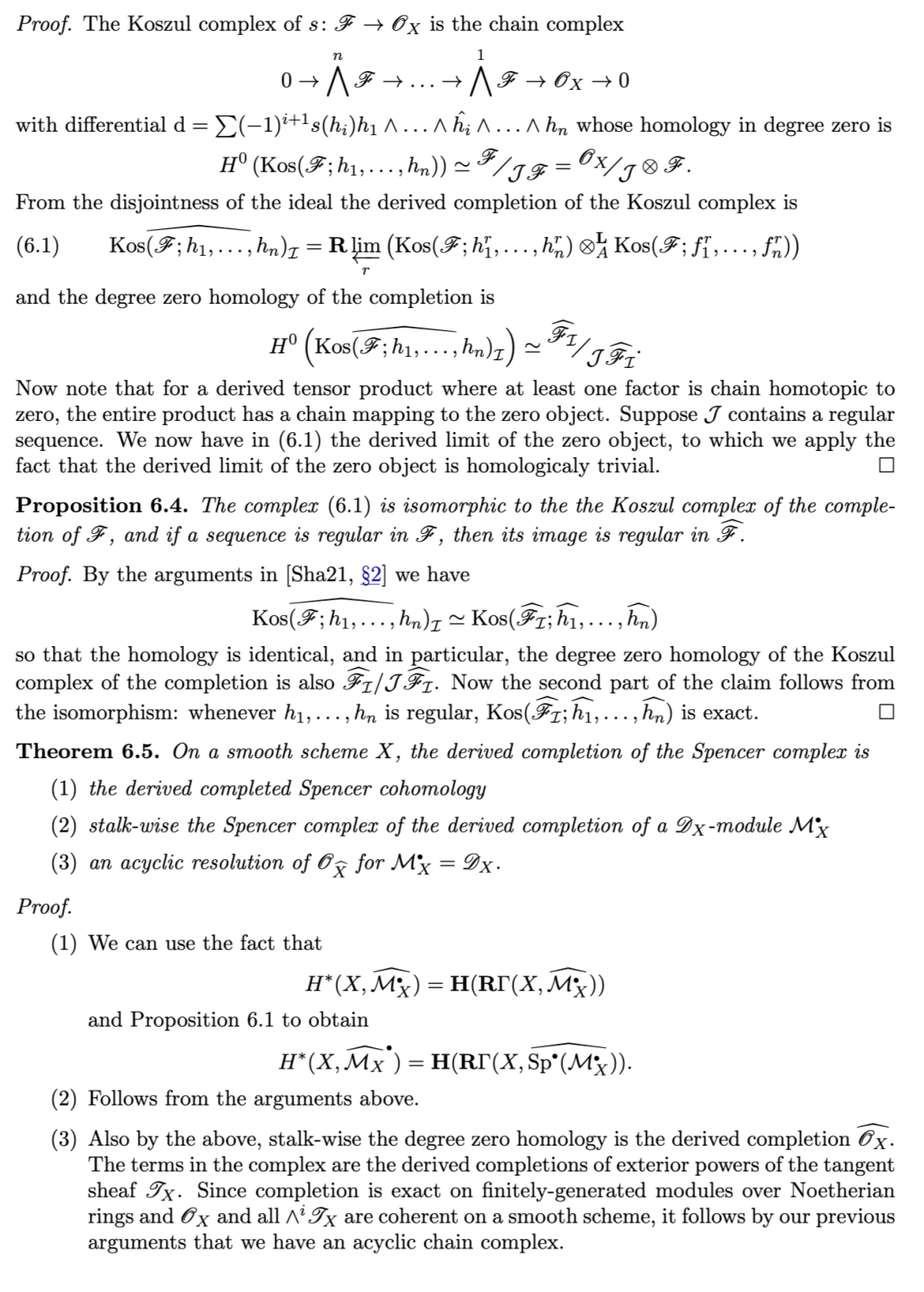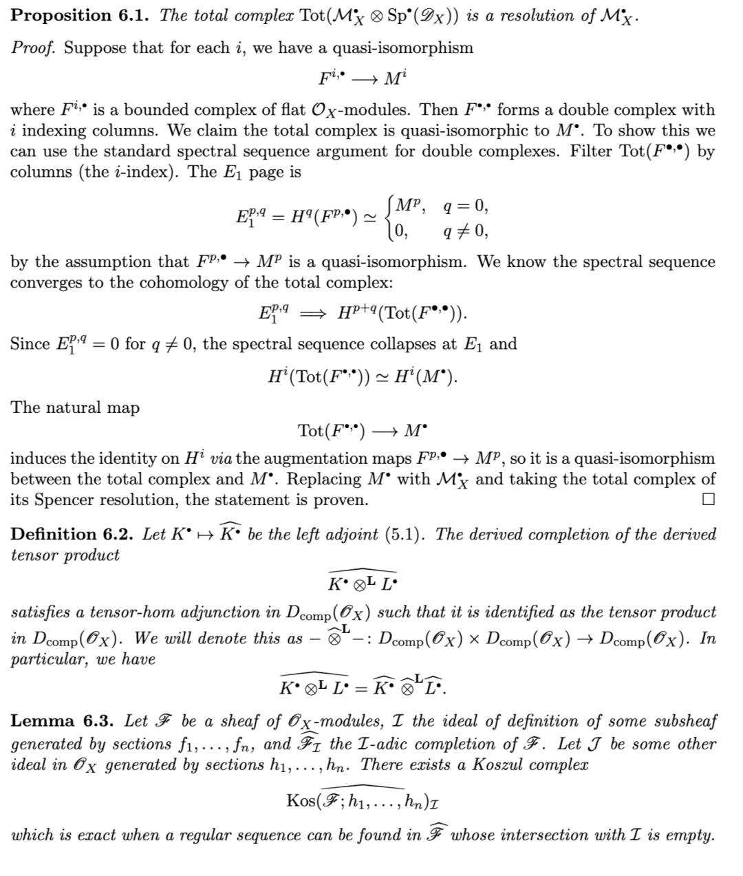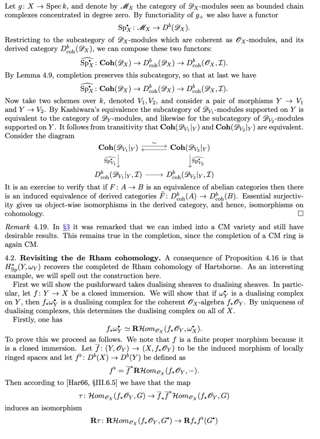 另一项有用的性质是:对有限生成理想 II 而言,沿 II 取导出完备化,通过张量–Hom 伴随关系,与关于 II 的导出局部上同调构成右伴随(反之,导出局部上同调为其左伴随)。该结果归功于 [TLL97],其中作者给出了著名的 Greenlees–May 对偶性 [GM92] 的层化(sheafification)版本。