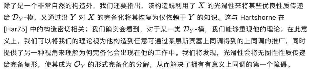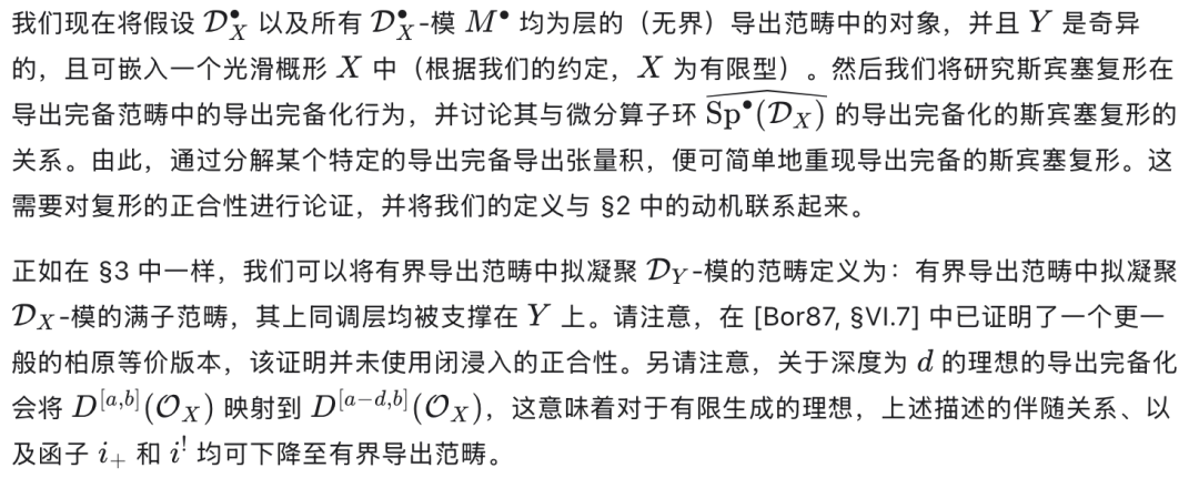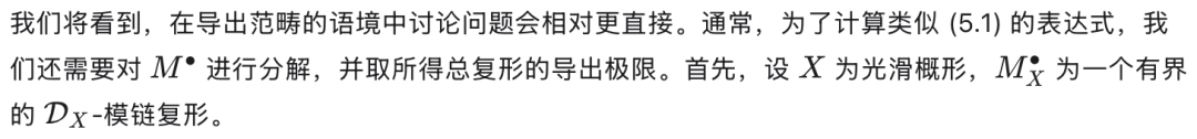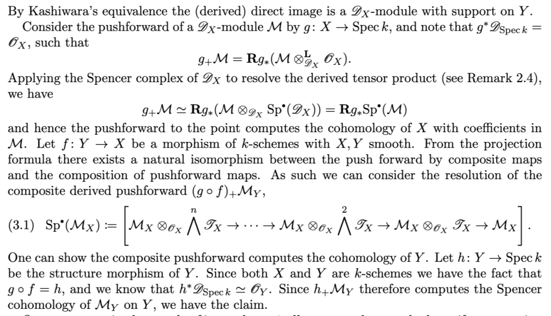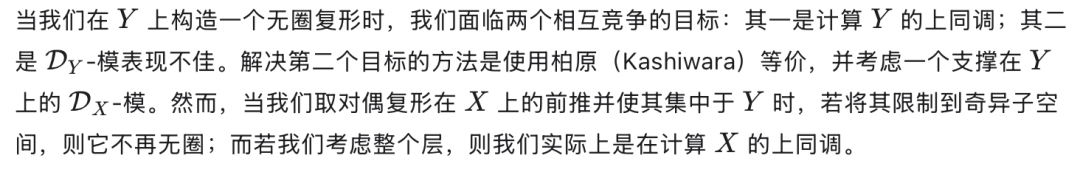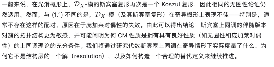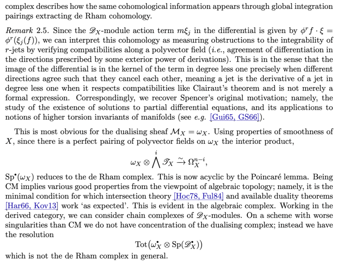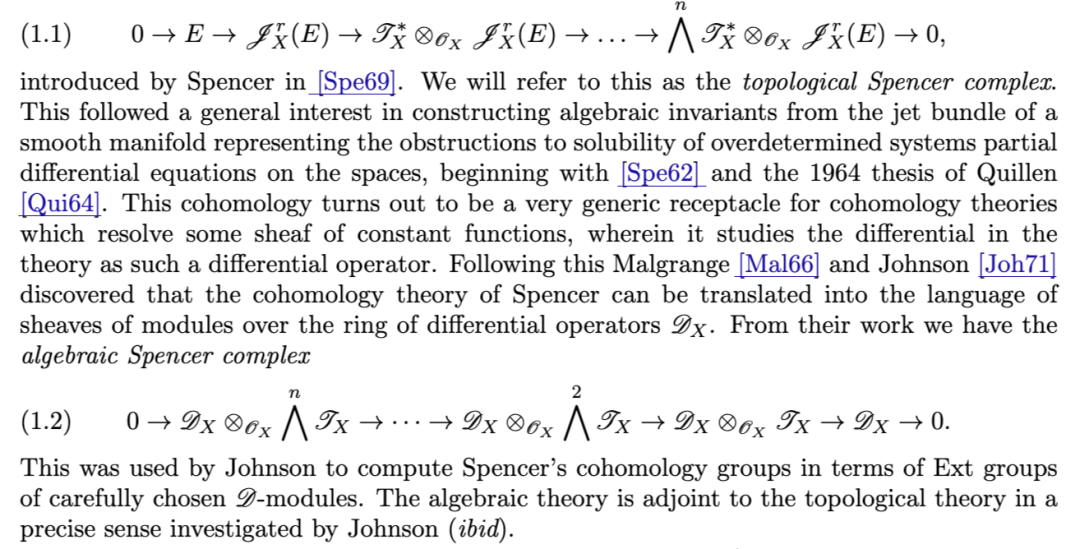 这被 Johnson 用来以特定选取的 D-模的 Ext 群来计算斯宾塞上同调群。代数理论在某种精确的意义下与拓扑理论互为伴随(adjoint),这一关系由 Johnson(同上文献)进行了深入研究。