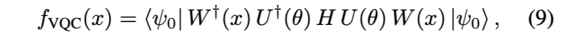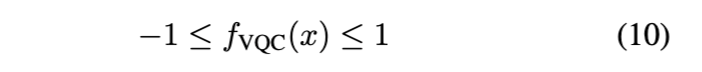式9中VQC的一个限制因素在于固定的厄米算符 H,这导致输出被限制在区间 λ₁ ≤ fᵥqc(x) ≤ λₙ 内,其中 λ₁ ≤ ⋯ ≤ λₙ 是 H 的特征值。