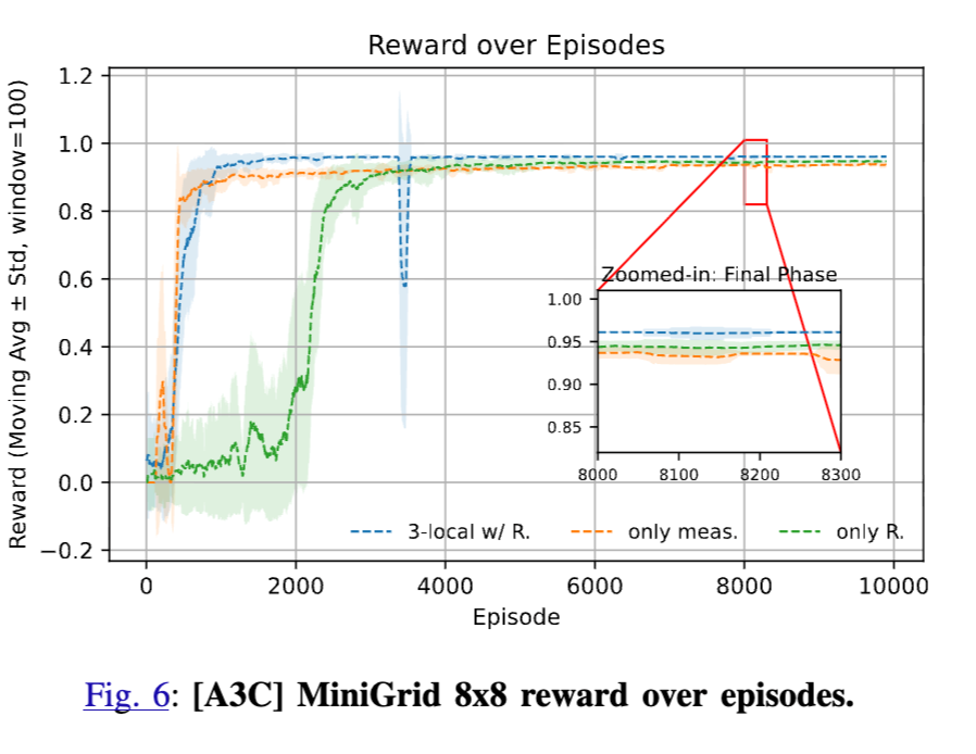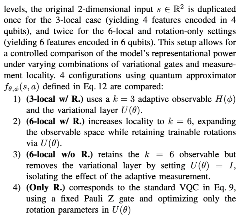 总体而言,我们的研究结果表明:自适应多量子比特测量能够释放混合量子–经典RL智能体中潜在的表达能力,从而在NISQ时代硬件上更高效地探索复杂的价值函数空间。