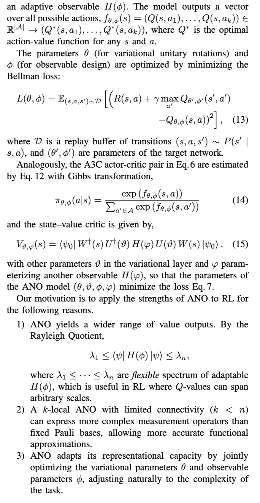本文将ANO模型与基于VQC的RL智能体相结合,应用于DQN与A3C等框架,旨在证明:更丰富的测量方案可显著提升各类环境下的策略学习效果。具体而言,本文贡献如下: