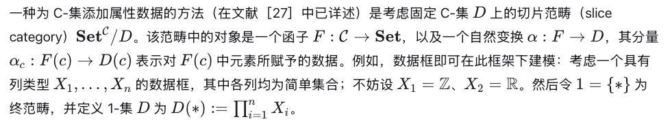 在第 2 节中,我们对比了数据集中可包含的两类信息。第一类是组合数据(combinatorial data),它能被 C-集很好地建模。然而,第二类——属性数据(attribute data)——却不能被恰当地建模,因为 C-集的同构类会抽象掉集合中元素的实际内容,仅保留元素之间的关系。