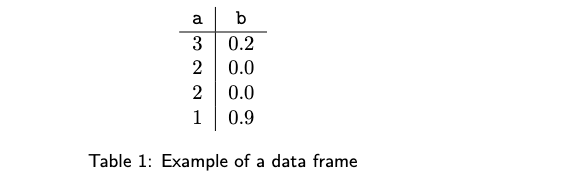 2.1 数据框与图 如引言所述,数据框是对“我们应如何存储数据”这一问题的流行解答。表 1 展示了一个仅含两列(a 与 b)的微型数据框。