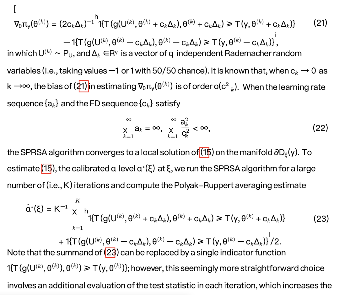 使用SPRSA算法实现实际效率,需要仔细地、逐案调整多个方面:学习率序列{ak}、有限差分率序列{ck}以及总迭代次数K。在我们的数值研究中,SPRSA算法的调参细节将在“模拟研究”部分的“抽样与调参细节”中提供。