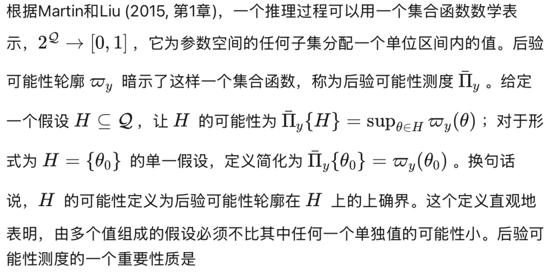 嵌套置信区域不仅仅是模型参数的一组估计量。它们在贝叶斯推理中的基础作用可以通过可能性理论正式建立(Dubois, 2006; Dubois & Prade, 1988; Zadeh, 1978)。设