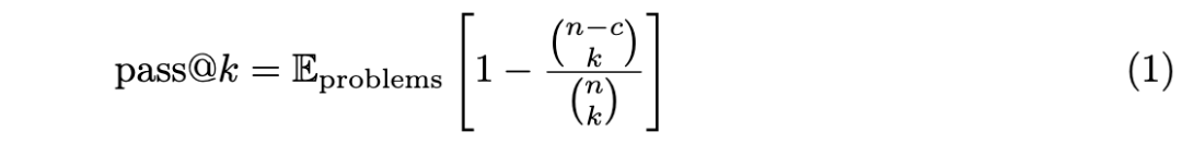 Pass@k。对于每个模型和每种提示配置,我们计算 k∈{1,4,8,32} 时的 pass@k 指标。遵循标准做法 [CTJ+21],pass@k 表示在 kk 个生成样本中至少有一个正确的概率。我们使用无偏估计量(unbiased estimator)来估算 pass@k:
