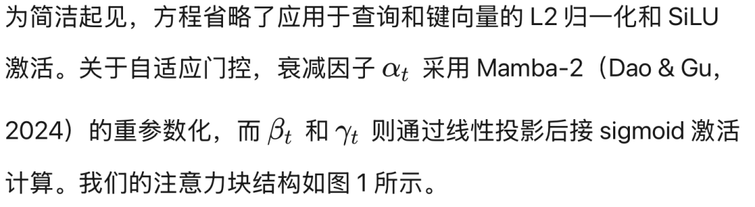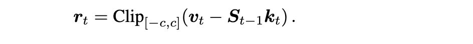 为确保计算稳定性,我们引入两种机制。首先,我们对查询和键向量应用 L2 归一化以提高数值稳定性。其次,我们通过裁剪残差来解决辅助状态