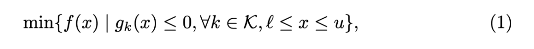 在本工作中,我们重新审视了 AlphaEvolve 基准测试套件中的三个问题,并通过非线性规划(NLP)的视角对其进行研究。非线性规划是一类优化问题,其目标是在由连续变量上的非线性约束所定义的可行集上,最小化一个非线性目标函数:
