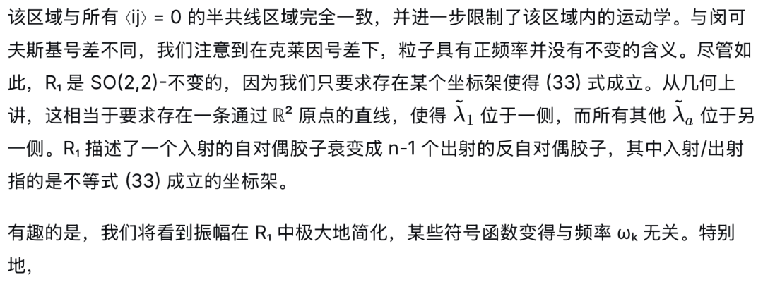 在区域 R₁ 中,利用 (34)、动量守恒和旋量恒等式,可以证明上一节的长表达式极大地简化为: