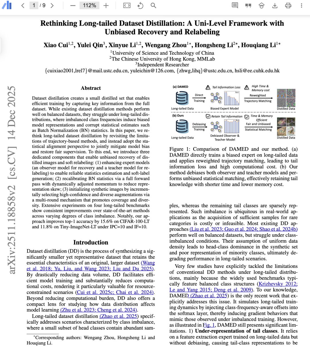 在长尾数据集上训练时,其内部表示不可避免地容易受到类别不平衡的影响,如果不实施适当的干预。优化学生模型来模仿这样的专家会导致蒸馏数据集继承这种偏置,导致对头部类别语义的过度强调和对少数类别的表示不足。