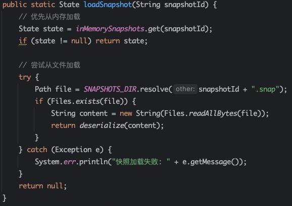 SnapshotManage通过内存和文件方式存储和加载数据。