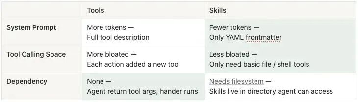 Anthropic的Skills采用了同样的模式,将技能视为不同的文件夹,每个文件夹都有一个Skill.md文件,其中包含Yaml和Markdown指令。