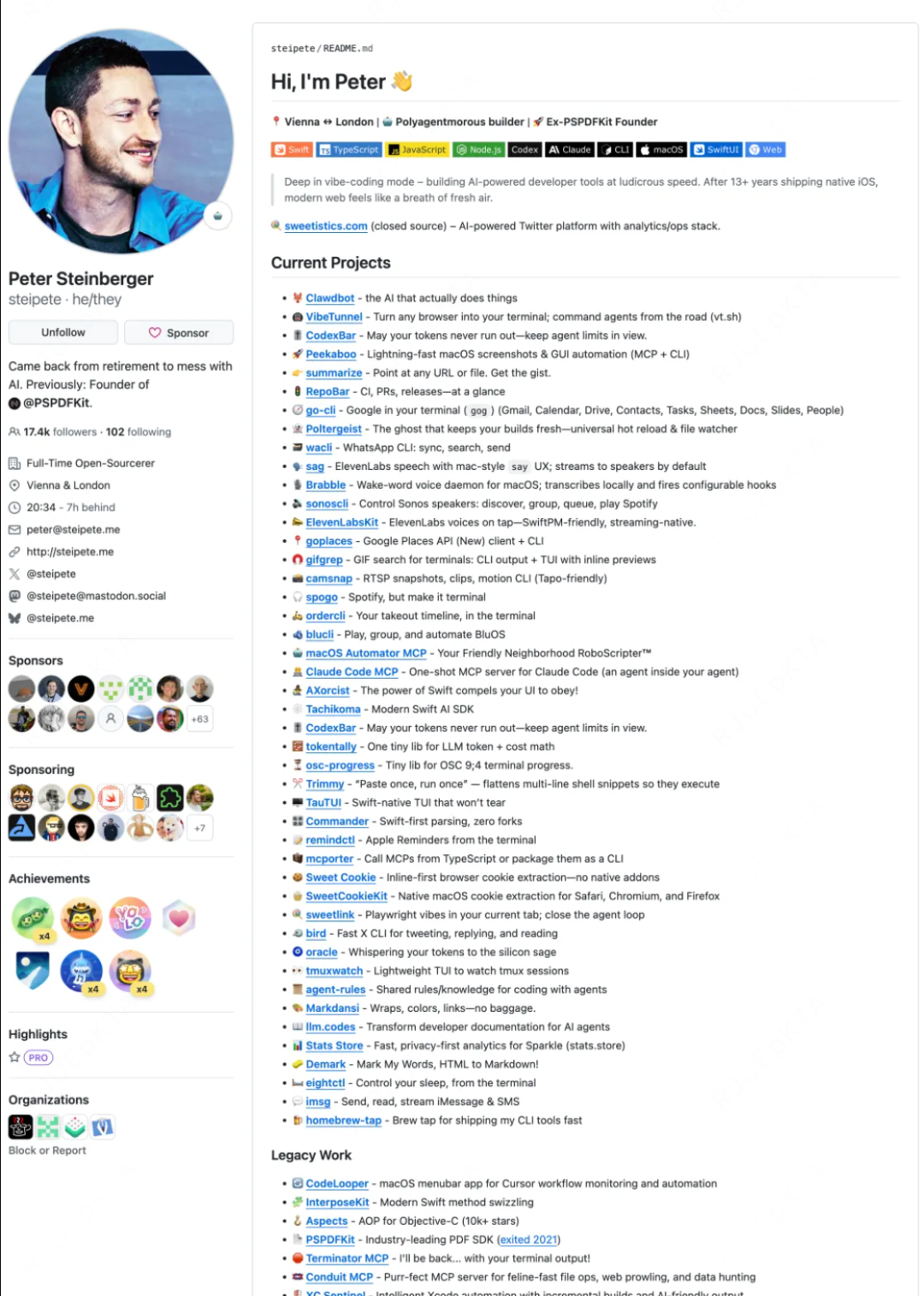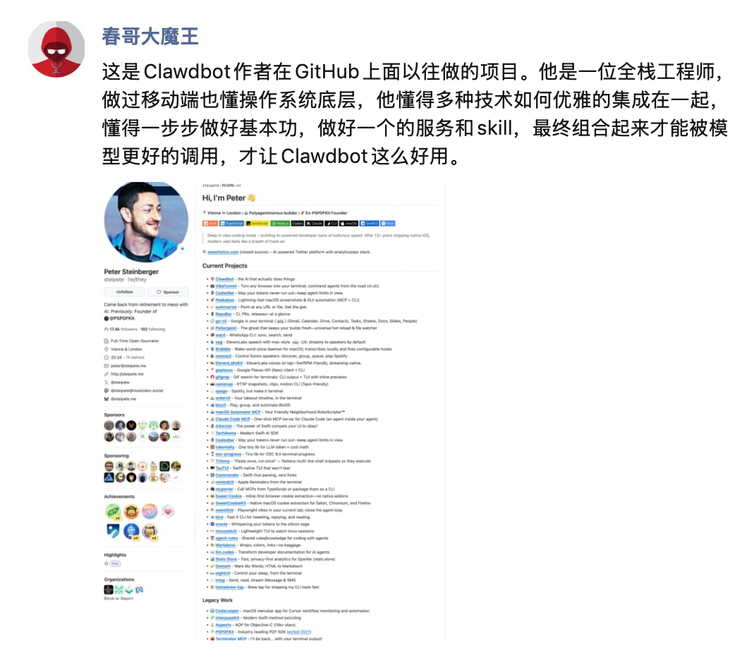 以下是Clawdbot作者GitHub上做的一连串项目。