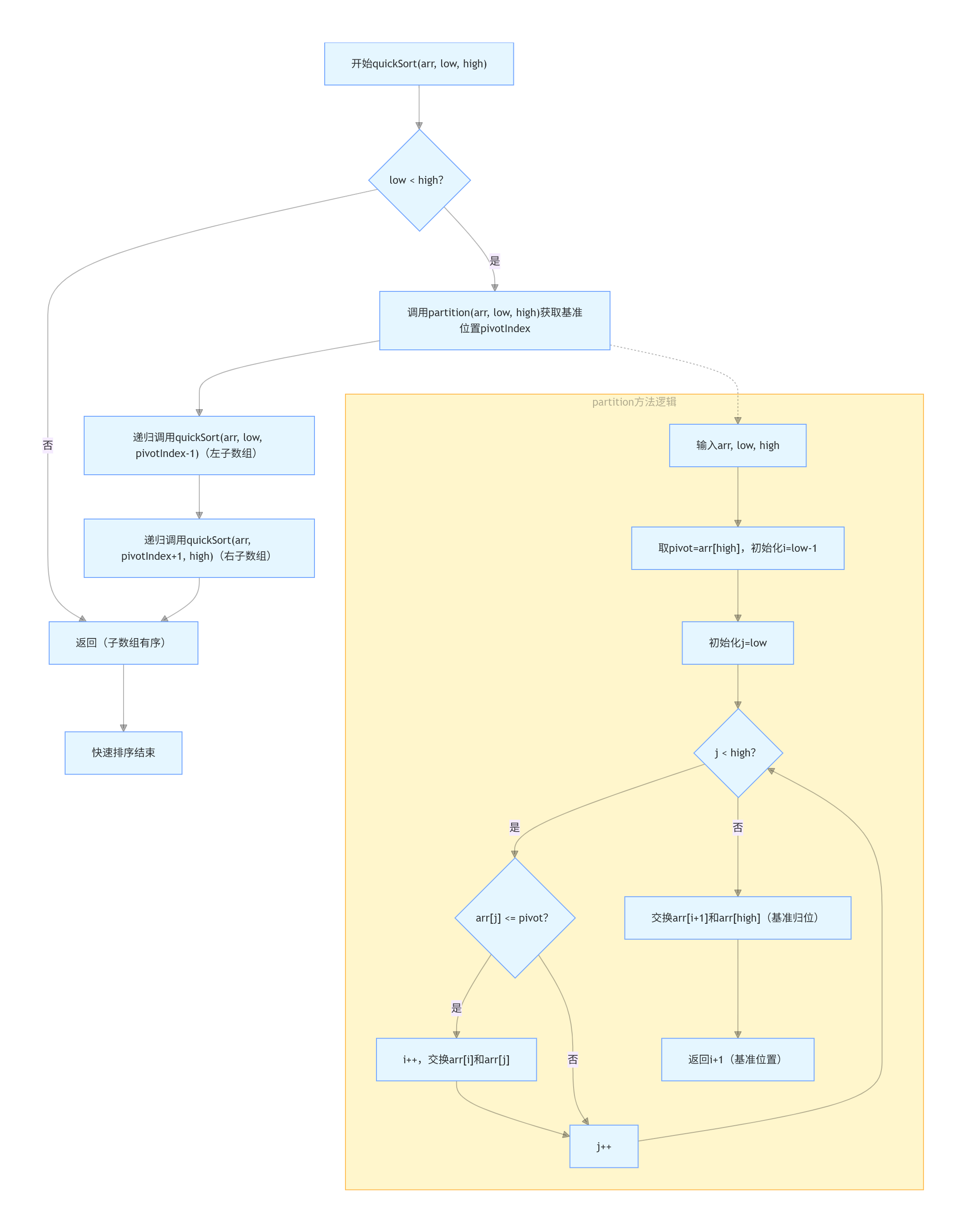 public static void quickSort(int[] arr, int low, int high) {