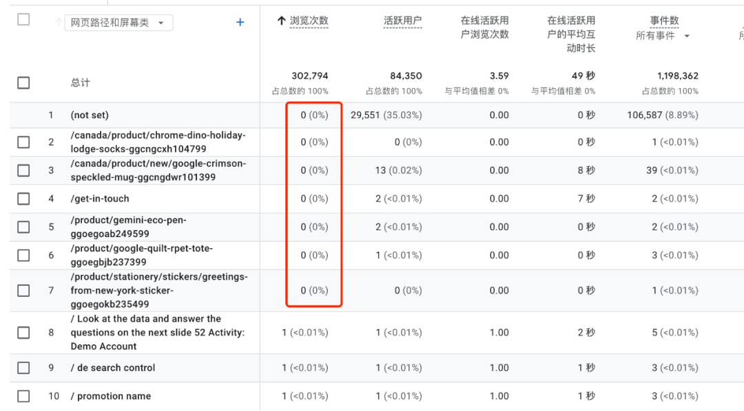 GA4中有些页面的浏览次数是0,如: