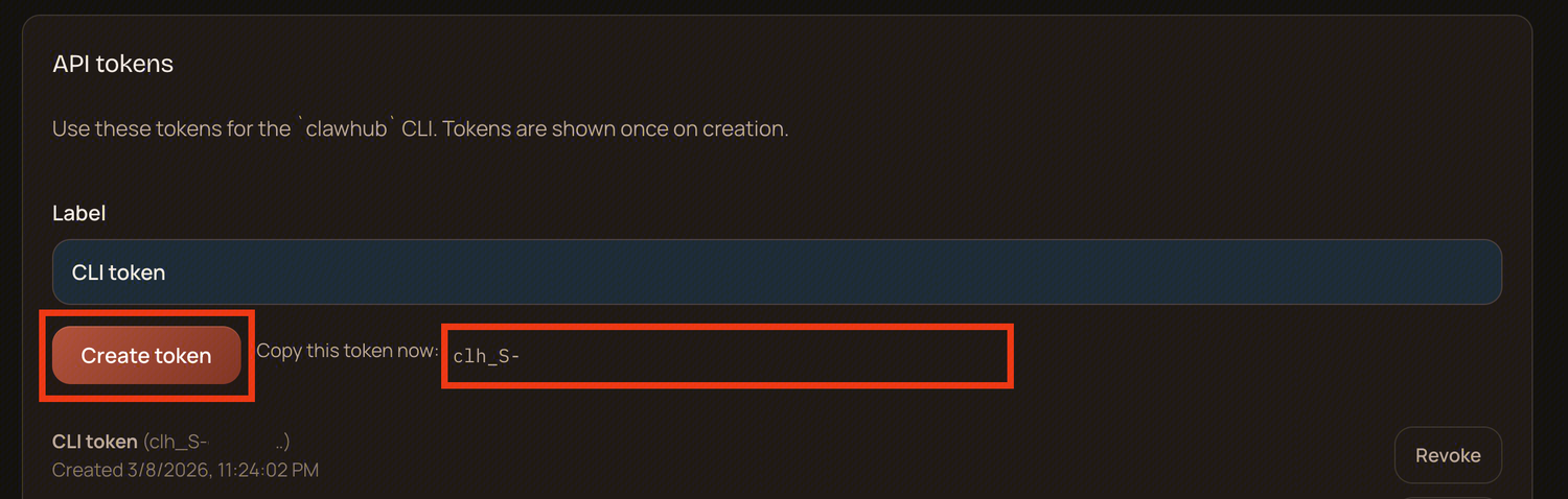 “请用 npm install -g clawhub@latest 安装 openclaw,用 clawhub login --token 【这里换成你的 token】登陆,然后就可以用这个工具搜索和安装 skills 了”。