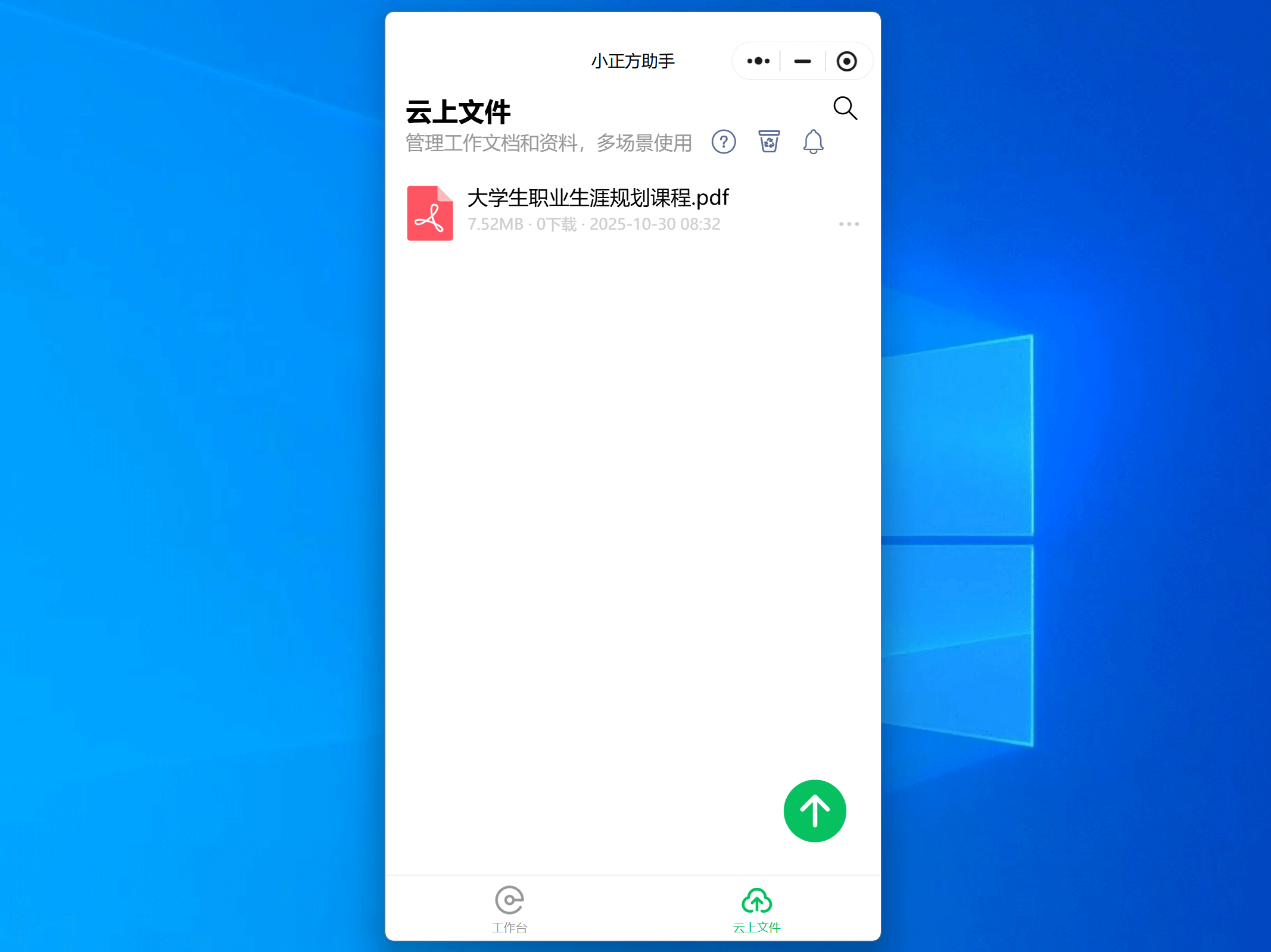 打开小正方助手(在电脑中操作),将文件上传到的云上文件中。