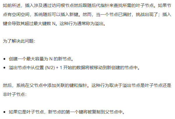 如果父节点也溢出了,它们也必须被分裂。这种分裂操作可能需要递归地一直进行到根节点。