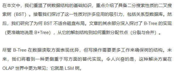 技术社群的这篇文章《是什么让OLTP数据库能够如此快速地查找数据?》,是Vu Trinh写的这篇文章的译文,给我们讲解了关系型数据库B-Tree的数据结构,虽然数据库不同,但原理相通,可以学习借鉴。